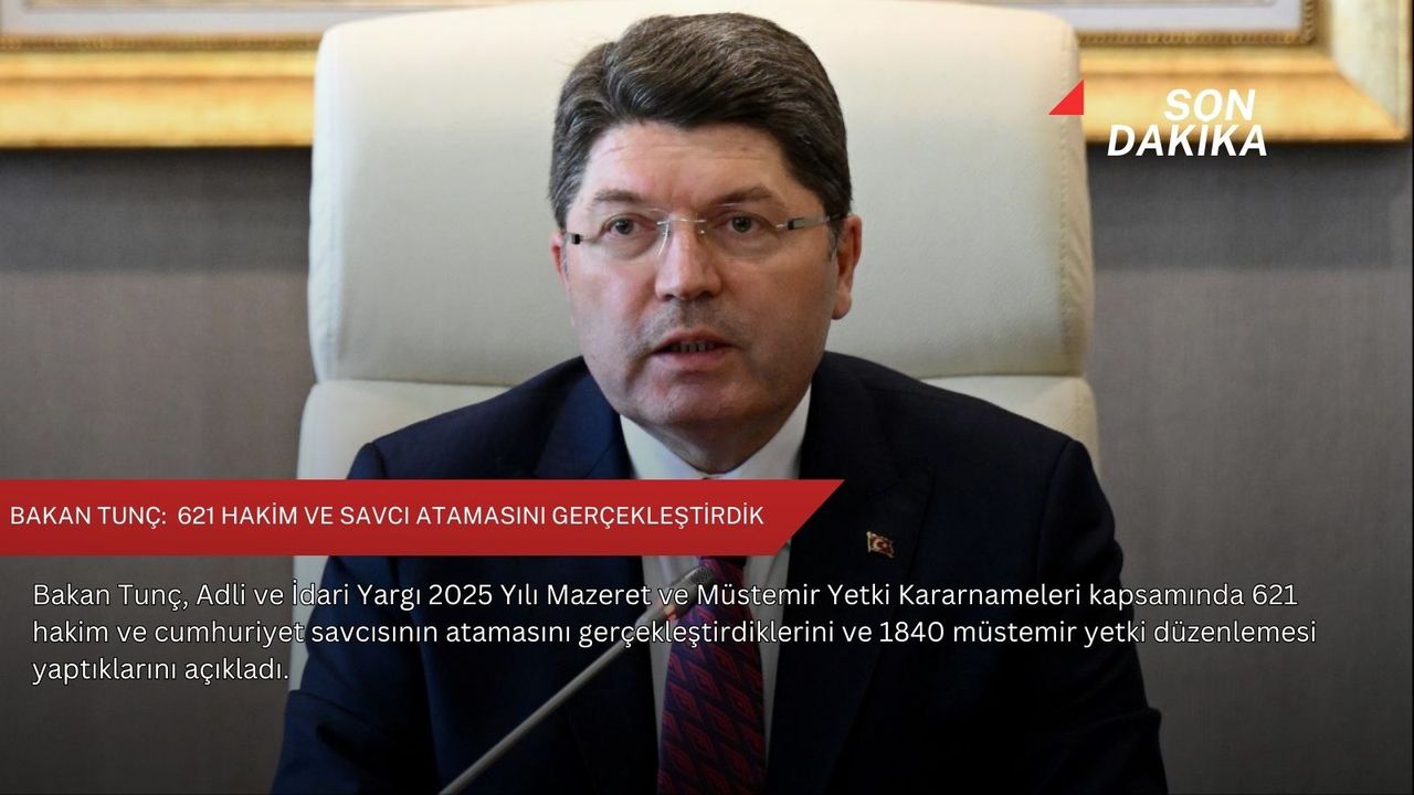 Adalet Bakanı Yılmaz Tunç, NSosyal hesabından yaptığı paylaşımda, Hakimler ve Savcılar Kurulu olarak "Adli ve İdari Yargı 2025 Yılı Mazeret ve Müstemir Yetki Kararnameleri"ni yayımladıklarını belirtti.