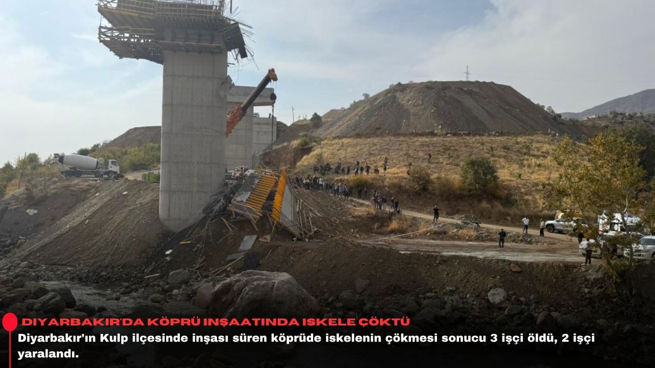 Diyarbakır'ın Kulp ilçesinde Kulp-Muş kara yolunda, ilçenin Tepecik ve Karabulak mahalleleri arasında yapımı devam eden köprüde beton dökülmesi sırasında iskele çöktü.
