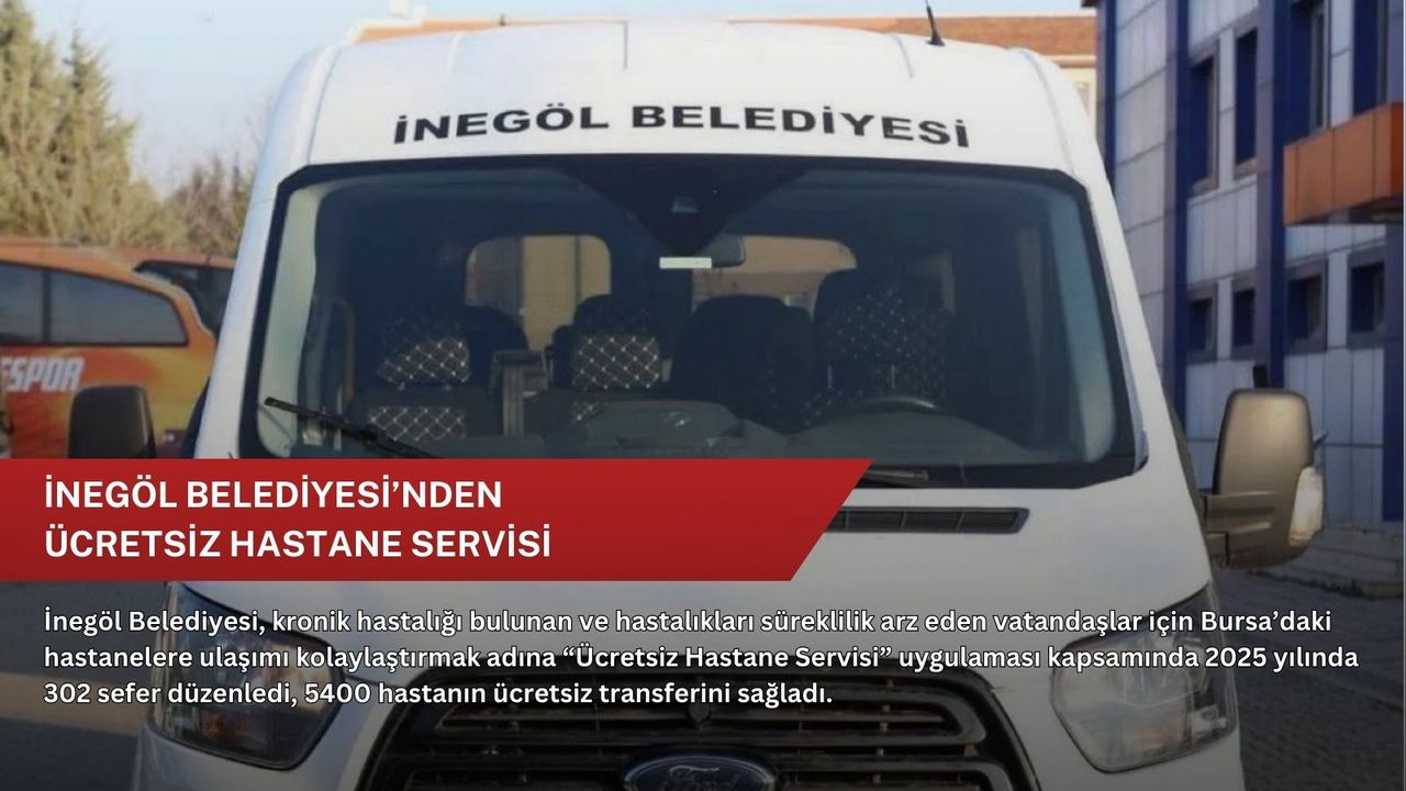 İnegöl Belediyesi’nin sosyal belediyecilik anlayışı doğrultusunda sunduğu bu hizmetten hafta içi her gün faydalanmak mümkün. Servisler, belirlenen gün ve saatlerde İnegöl’den Bursa’daki hastanelere ücretsiz olarak ulaşım sağlıyor. Uygulama kapsamında; Pazartesi, Çarşamba ve Cuma günleri saat 07.00’de Ziraat Bankası önünden hareket eden servisler Bursa Şehir Hastanesi ile Uludağ Üniversitesi Tıp Fakültesi’ne ulaşım sağlıyor. Salı ve Perşembe günleri ise saat 08.00’de yine Ziraat Bankası önünden kalkan servisler Bursa Şevket Yılmaz Eğitim ve Araştırma Hastanesi’ne hasta taşımacılığı gerçekleştiriyor.