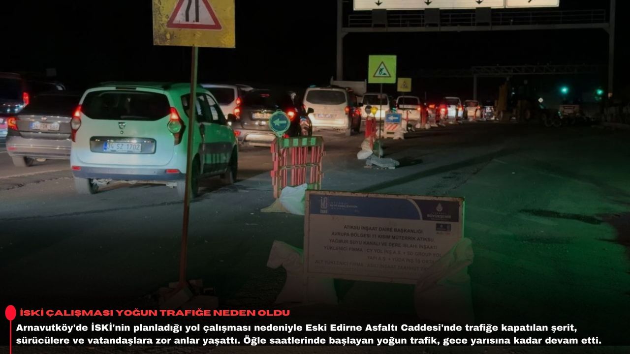 İstanbul'da İSKİ ekipleri Arnavutköy Çevre Yolu Eski Edirne Asfaltı Caddesi üzerinde altyapı çalışması başlatmak amacıyla şerit kapattı.
