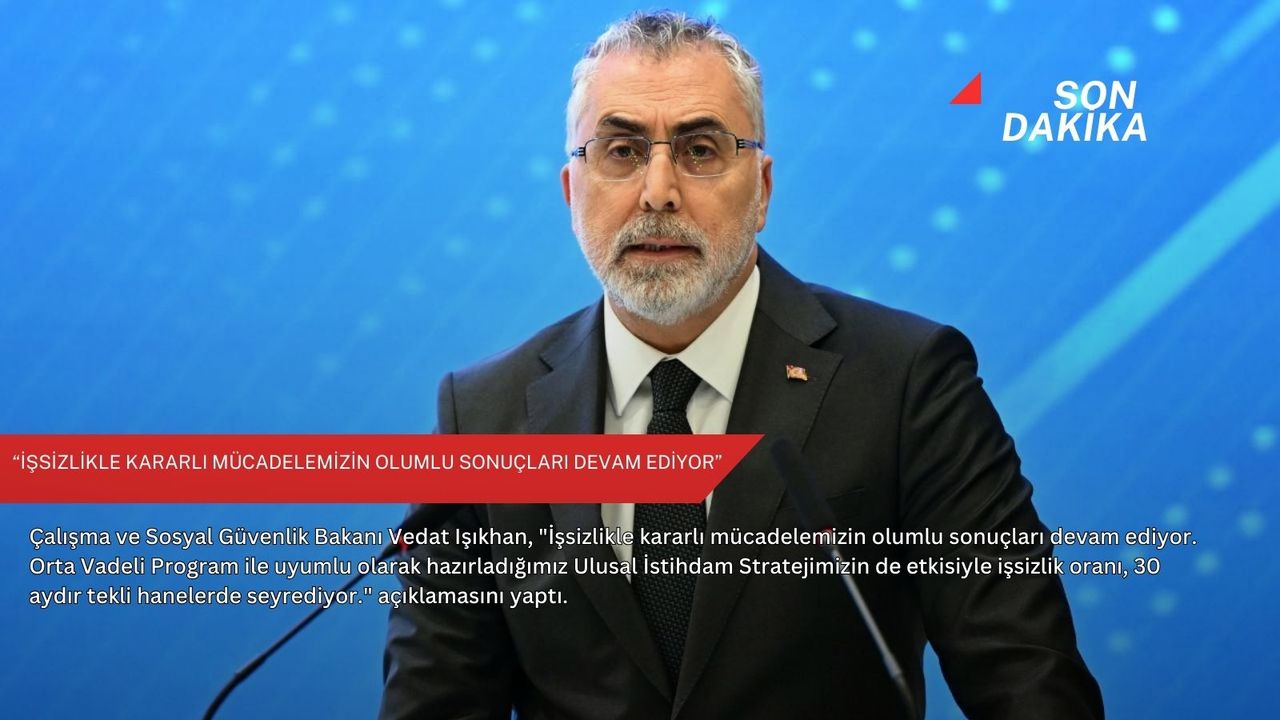 İstihdamın artmaya, Türkiye'nin güçlenmeye devam ettiğini vurgulayan Işıkhan, "İşsizlikle kararlı mücadelemizin olumlu sonuçları devam ediyor. Orta Vadeli Program ile uyumlu olarak hazırladığımız Ulusal İstihdam Stratejimizin de etkisiyle işsizlik oranı, 30 aydır tekli hanelerde seyrediyor." ifadelerini kullandı.