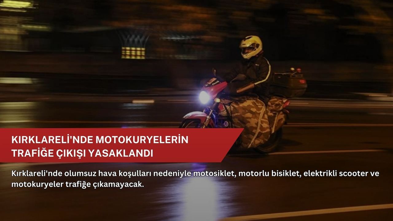Trafikte seyir ve can güvenliğinin sağlanması amacıyla motosiklet, motorlu bisiklet, elektrikli scooter ve motokuryelerin ikinci bir duyuruya kadar trafiğe çıkması yasaklandı.