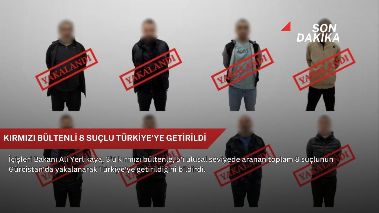 Bu kapsamda, Emniyet Genel Müdürlüğü İnterpol-Europol Daire Başkanlığı, Adalet Bakanlığı görevlileri, istihbarat, KOM ile Asayiş ve Siber Suçlarla Mücadele başkanlıkları'nın koordinesinde yapılan çalışmalar sonucu, yurt dışına kaçan ve haklarında arama kararı bulunan kişilerin izini titizlikle sürdürdüklerini kaydeden Yerlikaya, ilgili ülkelerin kolluk birimleriyle yürütülen ortak işbirliğiyle kırmızı bültenle aranan B.B., A.C.E ve Ü.G ile ulusal seviyede aranan B.S., E.Y., M.K., H.M. ve T.Ç.'nin yakalandığını, Türkiye'ye iadelerinin sağlandığını ifade etti.