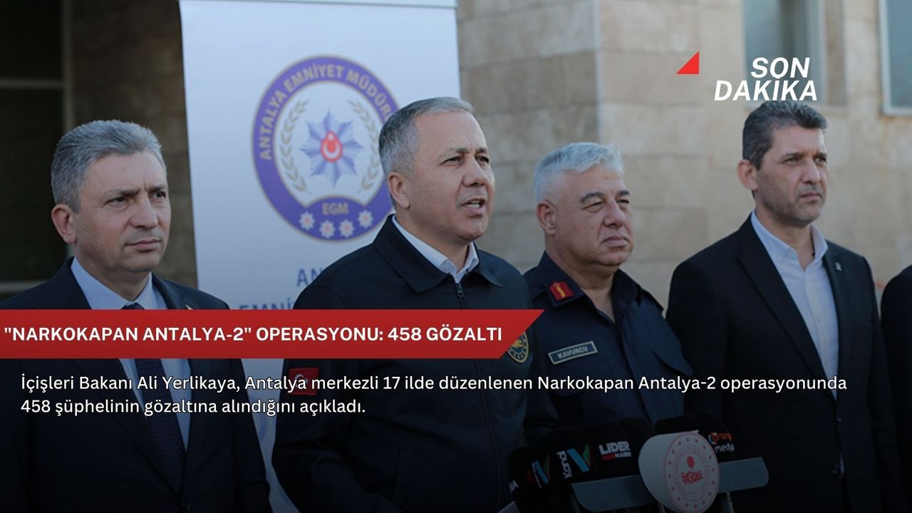 Bilgi ve belgeler doğrultusunda Antalya merkezli 17 ilde geniş kapsamlı operasyon düzenlediklerini vurgulayan Yerlikaya, "Narkokapan Antalya-2 operasyonumuza 609 ekip, 2 bin 753 polis, 1 helikopter, 2 İHA, 3 drone, 1 deniz aracı ve 35 özel eğitimli narkotik dedektör köpeği katıldı. Çok sayıda adrese eş zamanlı baskın düzenlendi ve 458 şahsı gözaltına aldık. Operasyonumuz devam ediyor" dedi.