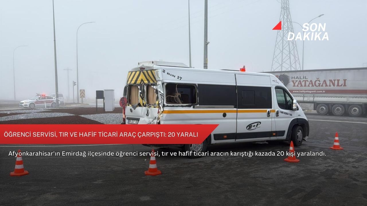 Afyonkarahisar'ın Emirdağ ilçesinde R.A. idaresindeki yabancı plakalı tır, Emirdağ - Çifteler kara yolu Karacalar köyü kavşağında ışıkta bekleyen Ö.H'nin kullandığı öğrenci servisi ile A.Ç. yönetimindeki hafif ticari araca arkadan çarptı.