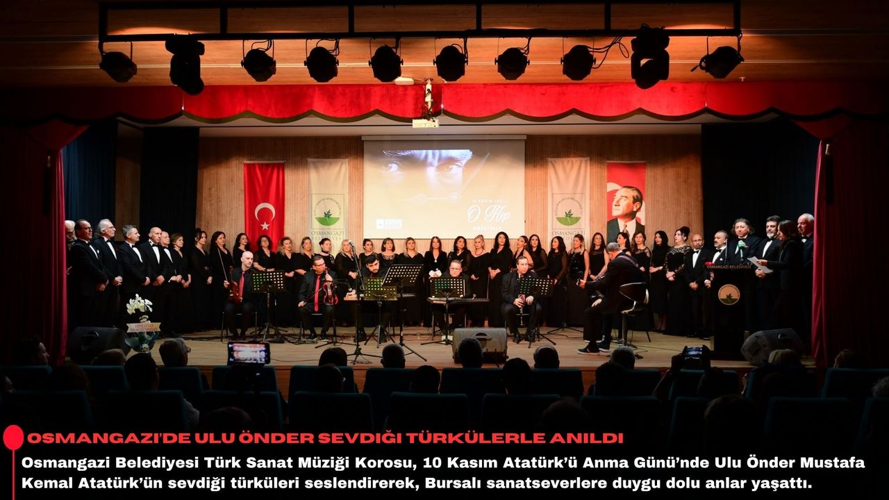 Cumhuriyetimizin kurucusu Gazi Mustafa Kemal Atatürk, ebediyete intikalinin 87’nci yılında, Osmangazi Belediyesi tarafından sevdiği ezgiler eşliğinde anıldı. Osmangazi Gösteri Merkezi’nde gerçekleşen anlam ve özlem dolu etkinlikte Rüştü Şentürk şefliğindeki Osmangazi Belediyesi Türk Sanat Müziği Korosu, Ulu Önder Atatürk’ün dinlediği türkülerin performansını sergiledi. Dinletiye CHP İl Başkanı Nihat Yeşiltaş, Bursa Büyükşehir Belediyesi Başkanvekili Berna Esentürk, Osmangazi Belediye Başkan Yardımcısı Mutlu Esendemir, CHP Osmangazi İlçe Başkanı Raşit Gürbüz, Osmangazi Belediyesi Meclis üyeleri Burak İleri ve Cemile Yılgör, Osmangazi Muhtarlar Derneği Başkanı Burhan Mandacı ve çok sayıda Bursalı katıldı.