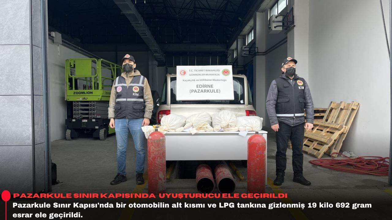 Narkotik dedektör köpeğinin katılımıyla yapılan aramada otomobilin alt bölümü ve LPG tankına gizlenmiş 19 kilo 692 gram esrar ele geçirildi.