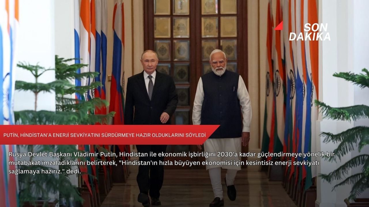 Rusya ile Hindistan arasında enerji alanındaki işbirliğinin de hızla geliştiğini anlatan Putin, "Hindistan'ın hızla büyüyen ekonomisi için kesintisiz enerji sevkiyatı sağlamaya hazırız. Rusya güvenilir bir enerji tedarikçisi ve Hindistan'ın enerji gelişimini desteklemek için gereken her şeye sahiptir." ifadelerini kullandı.
