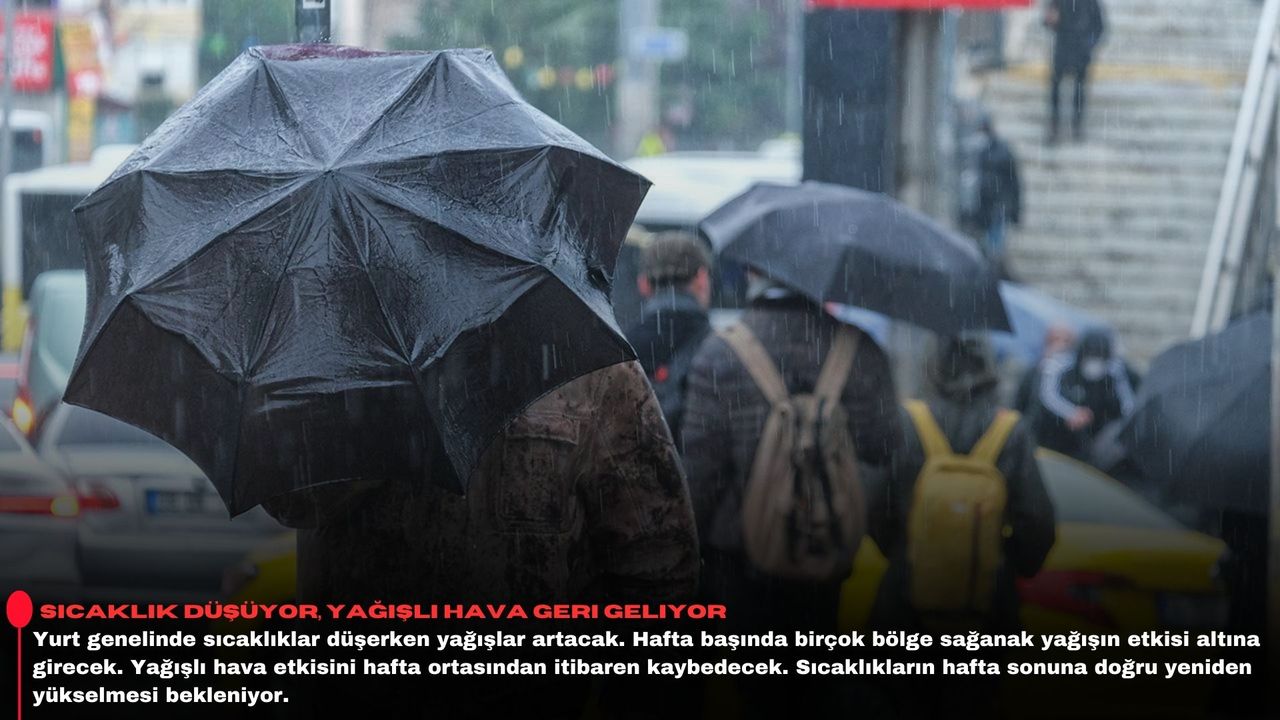 Hava sıcaklıkları mevsim normallerine inecek, yurdun birçok kesiminde sağanak etkili olacak.