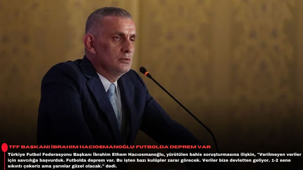 Türk futboluna zarar veren tüm unsurların dışarı atılması gerektiğini kaydeden Hacıosmanoğlu, "İstanbul Cumhuriyet Başsavcılığına ve ekibine teşekkür ediyorum. Onlar da titizlikle çalışıyor. Sportif olarak biz yargılıyoruz, onlar da ceza yargılaması olarak incelemeyi derinleştirerek devam ettiriyor. Bana göre de devam etmesi lazım. Burada Türk futboluna zarar veren hangi unsur varsa bunun dışarı atılması lazım. Elbette kulüp başkanları benim çağrımı dikkate alıp kendileri yaparsa olur. Yarın hem bizim hem de başsavcılığın incelemesi neticesinde olumsuz durumla karşılaştıkları zaman da üzülmesinler. Kendi temizliklerini kendileri yapsınlar. Hakemlerden, futbolculardan başladık. Hakemlere operasyon yapıldığında herkes memnun oldu. Futbolculara sıra gelince kendilerine dokunduğu için işi sulandırmaya, farklı yönlere çekmeye başladılar. Temizlik sadece hakemlerle olmaz. Yapılacaksa futbolun bütün unsurlarının temizlenmesi lazım. Hakemlerle başladık, futbolcularla devam ediyor. Bu hafta istediğimiz veriler bakanlıktan gelecek. Teknik direktör, tercüman, sağlık çalışanı, malzemeciler, temsilciler, gözlemciler, onlar da bu hafta geliyor. Asıl bu incelemeden sonra biz kendi önümüzü, TFF uhdesinde olanları temizlemiş olacağız. Umarım kulüpler de kendi önlerini temizler ve bu iş hem başsavcılığa hem bize kalmaz." diye konuştu.