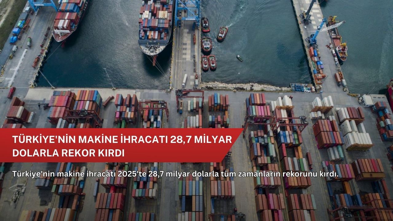Makine İhracatçıları Birliği (MAİB) verilerinden derlenen bilgilere göre, serbest bölgeler de dahil edildiğinde makine imalat sanayisinin konsolide ihracatı 2025'te yıllık bazda yüzde 1,9 artarak 28,7 milyar dolara yükseldi. Bu rakam, tüm zamanların en yüksek verisi olarak kayıtlara geçti.
