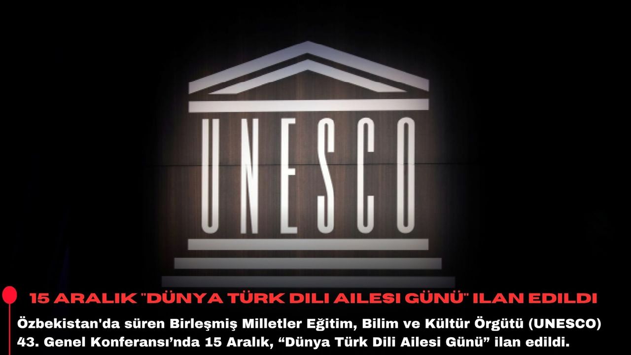 Özbekistan’ın tarihi Semerkant şehrinde 194 ülkeden 5 binden fazla katılımcıyla geçen hafta başlayan UNESCO 43. Genel Konferansı’nda Cumhurbaşkanı Recep Tayyip Erdoğan’ın 15 Aralık’ın "Dünya Türk Dili Ailesi Günü" ilan edilmesi önerisine ilişkin karar taslağı görüşülerek onaylandı.