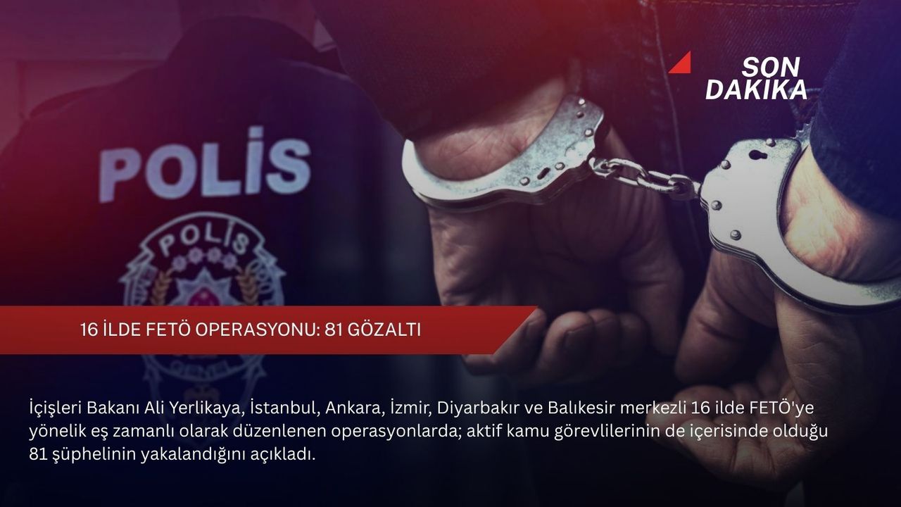İçişleri Bakanı Ali Yerlikaya, NSosyal hesabından yaptığı açıklamada, Emniyet Genel Müdürlüğü, KOM ve İstihbarat Başkanlıkları ile Cumhuriyet Başsavcılıkları koordinasyonundaki çalışmalar, gizli tanıktan elde edilen dijital materyallerdeki bilgiler doğrultusunda İstanbul, Ankara, Diyarbakır, Balıkesir, Bilecik, Bursa, Erzincan, Hatay, İzmir, Kayseri, Kütahya, Manisa, Muğla, Sivas, Şanlıurfa ve Rize'de operasyon düzenlendiğini belirtti.