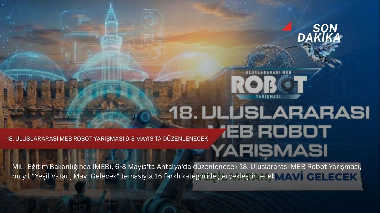 MEB'den yapılan açıklamaya göre, Bakanlıkça mesleki ve teknik eğitimin niteliğinin artırılması, toplumda bu alanda farkındalık oluşturulması, girişimci ve rekabetçi bireyler yetiştirilmesi, endüstriyel ve teknolojik gelişmelerin tanıtılması, sergilenmesi ve deneyimlerin paylaşılması amacıyla düzenlenen "18. Uluslararası MEB Robot Yarışması", 6-8 Mayıs tarihleri arasında Antalya'da gerçekleştirilecek.