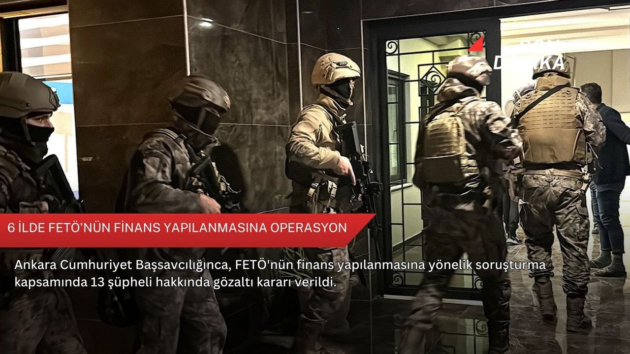 "FETÖ/PDY silahlı terör örgütü şirketler yapılanması ve söz konusu şirketlerin faaliyetleri kapsamında terörizmin finansmanı eylemlerinin deşifre edilmesi amacıyla MASAK incelemesi, teknik ve fiziki takip sonucunda, yurtdışından temin edilen paraları yine yurtdışında faaliyette bulunan şirketler üzerinden, geçmiş tarihlerde haklarında adli işlem yapılan örgüt mensuplarına veya yakınlarına transfer ettiklerine dair deliller elde edilen 13 şüphelinin, Ankara merkezli 6 ilde, 09.12.2025 tarihinden itibaren eş zamanlı olarak gözaltına alınmalarına karar verilmiştir."