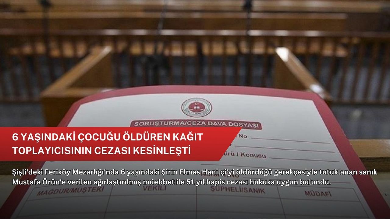 Feriköy Mahallesi'nde 31 Ekim 2024'te haber alınamayan ve ailesinin kayıp başvurusunda bulunduğu 6 yaşındaki Şirin Elmas Hanilçi, 2 Kasım 2024'te Feriköy Mezarlığı'nda öldürülmüş halde bulunmuş, gözaltına alınan şüpheli Mustafa Örün tutuklanmıştı.