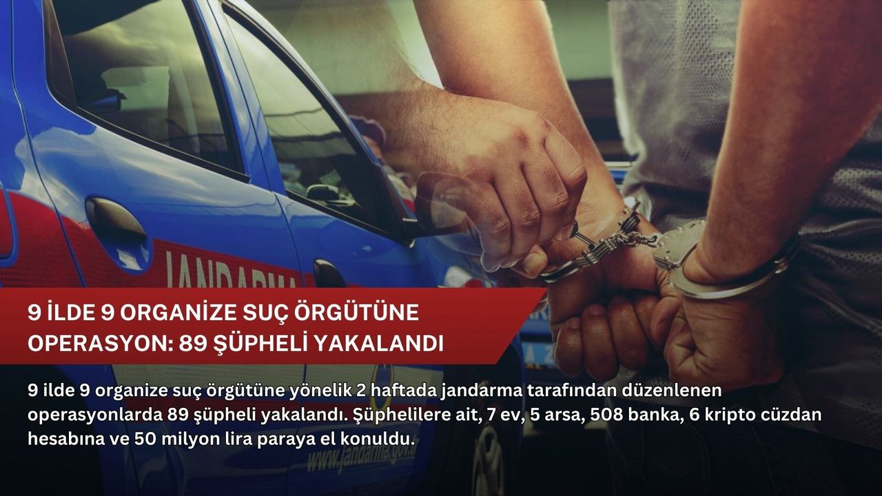 Bakan Yerlikaya, son 2 haftada 9 ilde 9 organize suç örgütüne yönelik düzenlenen operasyonlarda 89 şüphelinin yakalandığını, 65'inin tutuklandığını, 22'si hakkında adli kontrol hükümleri uygulandığını ve diğerlerinin işlemlerinin devam ettiğini söyledi: