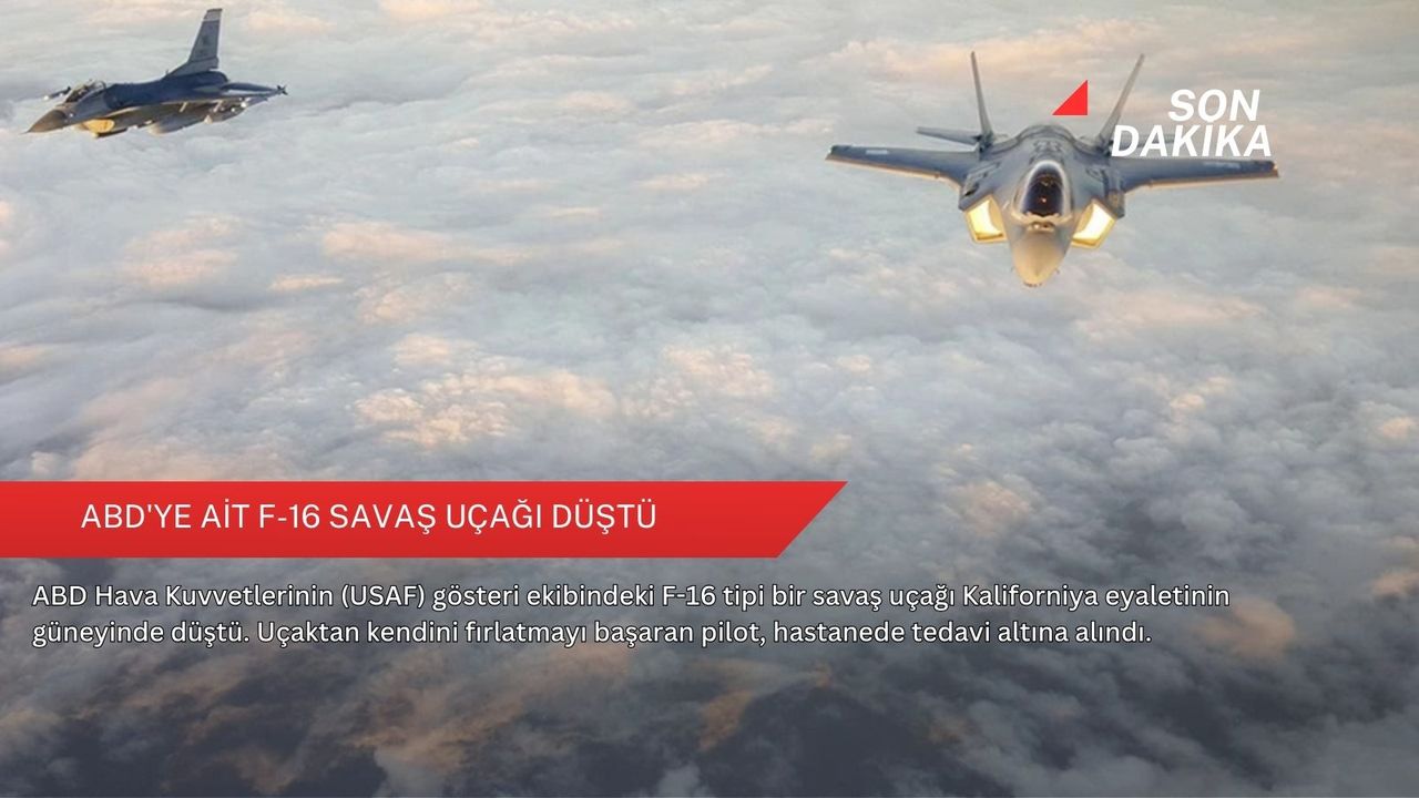 Nellis Hava Kuvvetleri Üssü tarafından yapılan açıklamaya göre, USAF bünyesindeki "Thunderbirds" akrobasi timine bağlı F-16C Fighting Falcon savaş uçağı, San Bernardino bölgesinde Trona Havalimanı yakınlarında düştü.