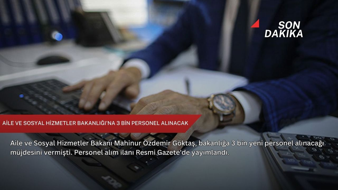 Resmi Gazete’de yayımlanan ilana göre, Aile ve Sosyal Hizmetler Bakanlığına 3 bin personel alımı yapılacak.