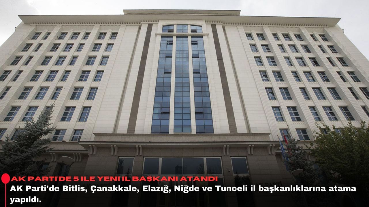 AK Parti Teşkilat Başkanlığının NSosyal hesabından yapılan açıklamada, Cumhurbaşkanı ve AK Parti Genel Başkanı Recep Tayyip Erdoğan'ın tensipleriyle, Bitlis İl Başkanlığına Engin Günceoğlu, Çanakkale İl Başkanlığına Abdurrahman Kuzu, Elazığ İl Başkanlığına İbrahim Sencer Selmanoğlu, Niğde İl Başkanlığına Hacı Mehmet Eren ve Tunceli İl Başkanlığına Hakan Özer'in atandığı belirtildi.