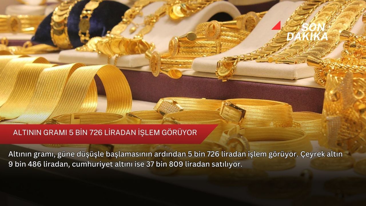 Dün ons fiyatındaki düşüşe paralel değer kaybeden gram altın, günü önceki kapanışın yüzde 0,2 altında 5 bin 736 liradan tamamladı. Bugüne düşüşle başlayan gram altın saat 09.40 itibarıyla yüzde 0,2 azalışla 5 bin 726 lira seviyesinde bulunuyor.