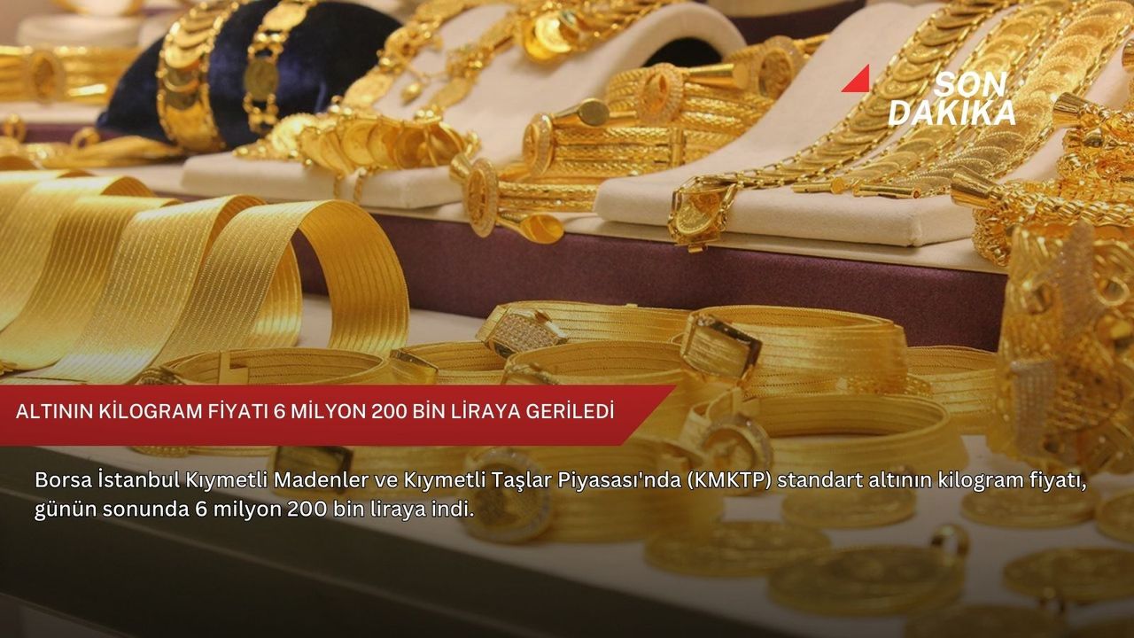 Altın piyasasında en düşük 6 milyon 200 bin lira, en yüksek 6 milyon 325 bin lirayı gören standart altının kilogram fiyatı, günün sonunda yüzde 0,8 düşüşle 6 milyon 200 bin lira oldu.