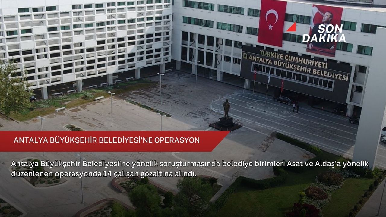 Antalya Cumhuriyet Başsavcılığınca yürütülen soruşturma kapsamında, Antalya Büyükşehir Belediyesine bağlı ALDAŞ Altyapı Yönetim ve Danışmanlık Ticaret AŞ üzerinden yapılan harcamalara ilişkin "nitelikli zimmet", "edimin ifasına fesat karıştırma", "denetim görevinin ihmali", "güveni kötüye kullanma" ve" haksız mal edinme" iddialarıyla operasyon düzenlendi.