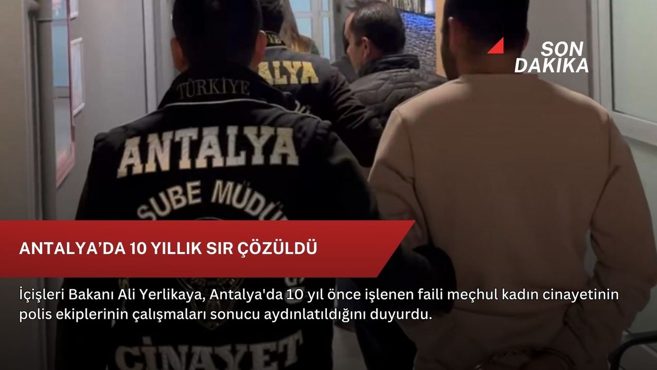 Bakan Yerlikaya, NSosyal hesabından, "Antalya'da 10 yıl önce işlenen faili meçhul kadın cinayeti, Antalya Emniyet Müdürlüğümüzce aydınlatıldı, katil hapiste" başlığıyla yaptığı açıklamada, polis ekiplerinin faili meçhul cinayetleri geriye doğru tek tek ele aldığını belirtti.