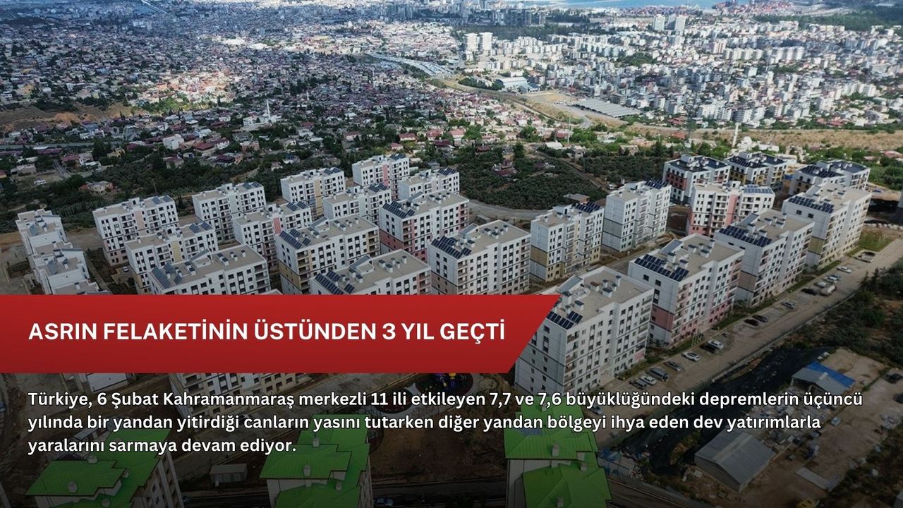 Türkiye, üç yıl önce 6 Şubat’ta saat 04.17'de Pazarcık’ta 7,7; saat 13.24'te ise Elbistan’da meydana gelen 7,6 büyüklüğündeki depremlerin acısıyla sarsıldı.