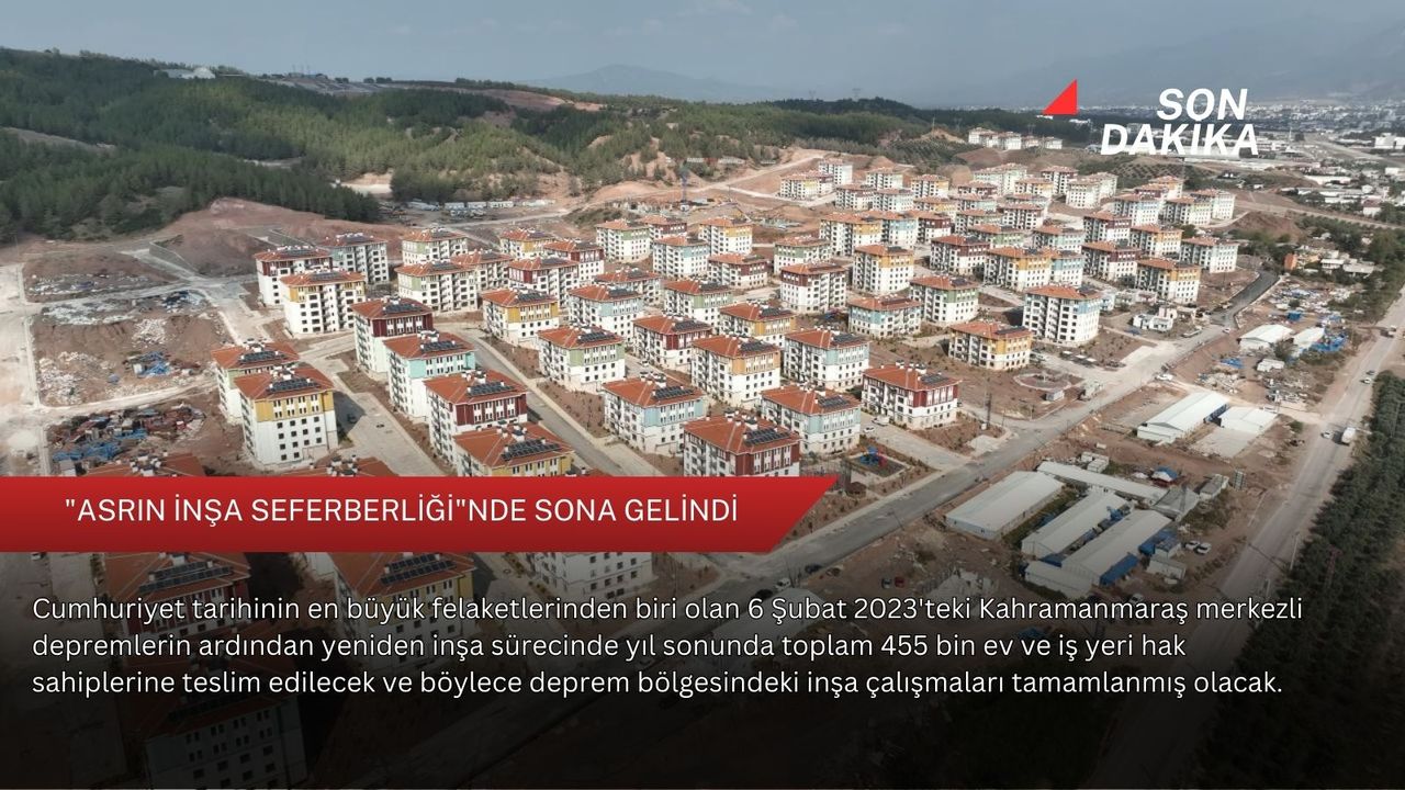 Son bir yılda 254 bin konut daha tamamlandı. 27 Aralık'ta toplam 455 bin konut ve iş yerinin teslim edilmesiyle deprem bölgesinde inşa çalışmaları tamamlanmış olacak.