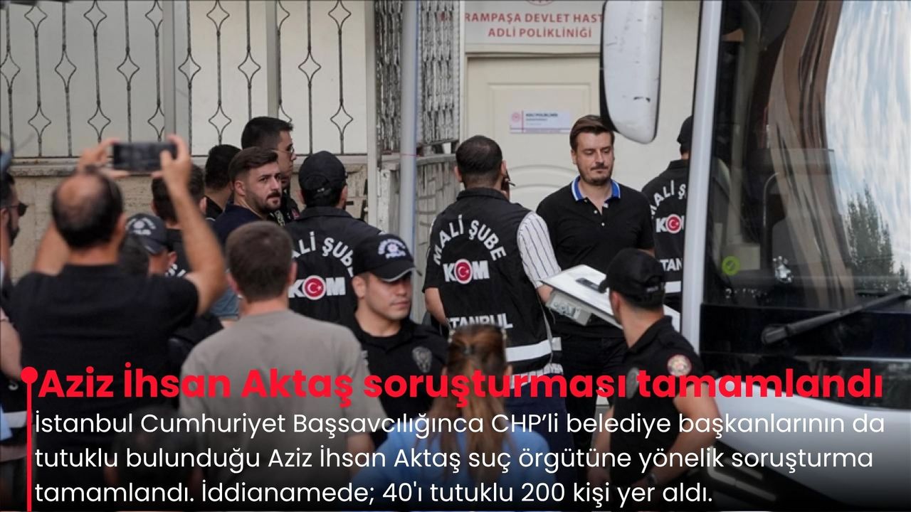 Aziz İhsan Aktaş ; suç işlemek amacıyla örgüt kurma , ihaleye fesat karıştırma, resmi belgede sahtecilik, özel belgede sahtecilik, kamu kurm ve kuruluşlarını dolandırıcılık, rüşvet alma, rüşvet verme, suçtan kaynaklanan mal varlığı değerlerini aklama, haksız mal edinme, gerçeğe aykırı fatura düzenleme 270 yıldan 704 yıla kadar hapsi isteniyor.