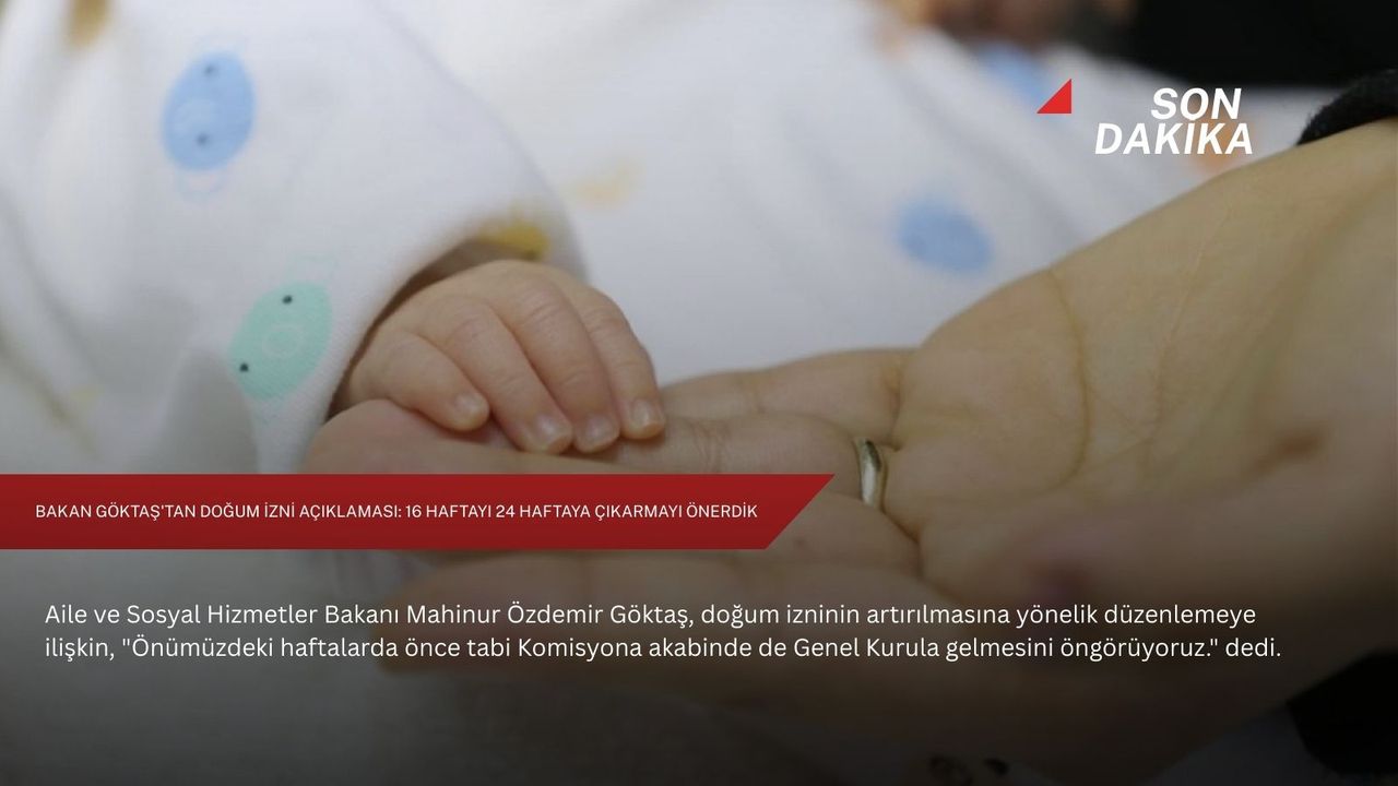 Bakanlığın doğum iznine ilişkin çalışmasını tamamlandığını dile getiren Göktaş, "16 haftadan 24 haftaya çıkmasını önerdik. Doğum öncesi 8 haftanın annelerimiz isterse 6 haftasını doğum sonrasına ekleyerek süreci bu şekilde tamamlayacağız. Mevcutta izinde olanlar otomatik olarak bu düzenlemeden aynı haftalar kapsamında yararlanacak."
