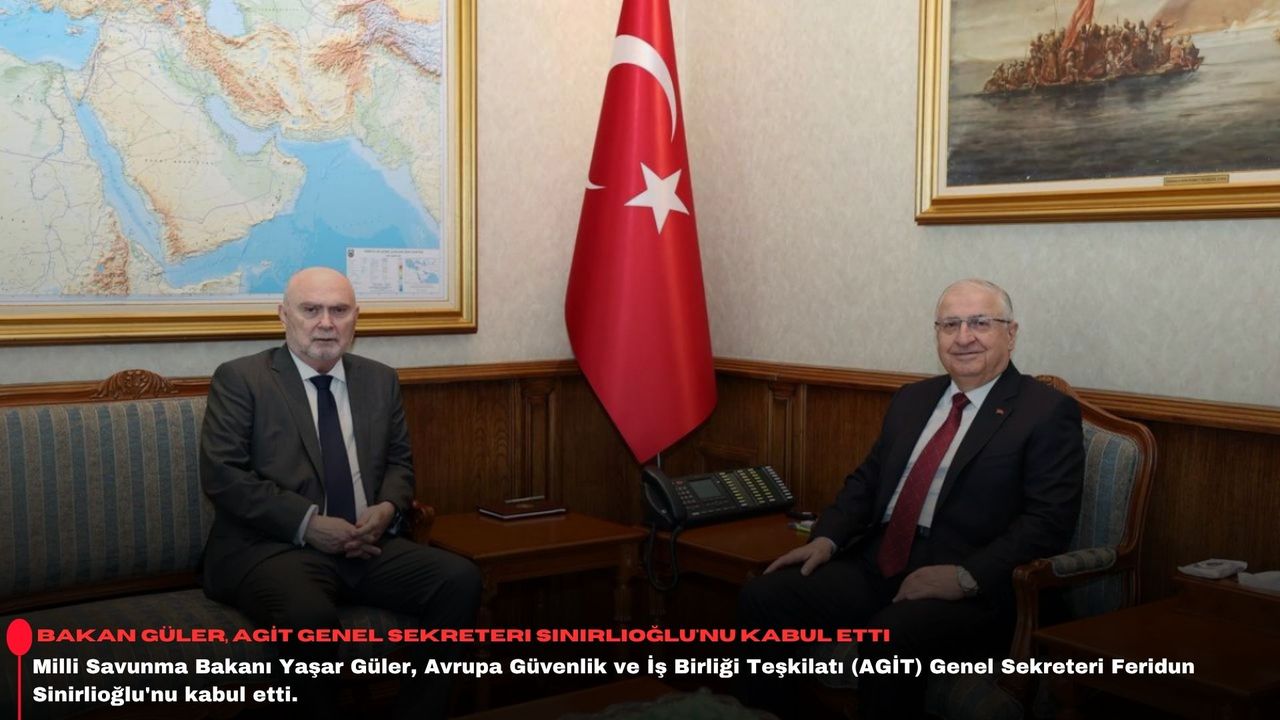 Bakanlığın NSosyal hesabından yapılan paylaşımda, "Milli Savunma Bakanı Yaşar Güler, Avrupa Güvenlik ve İş Birliği Teşkilatı (AGİT) Genel Sekreteri Feridun Sinirlioğlu'nu kabul etti." ifadesine yer verildi.
