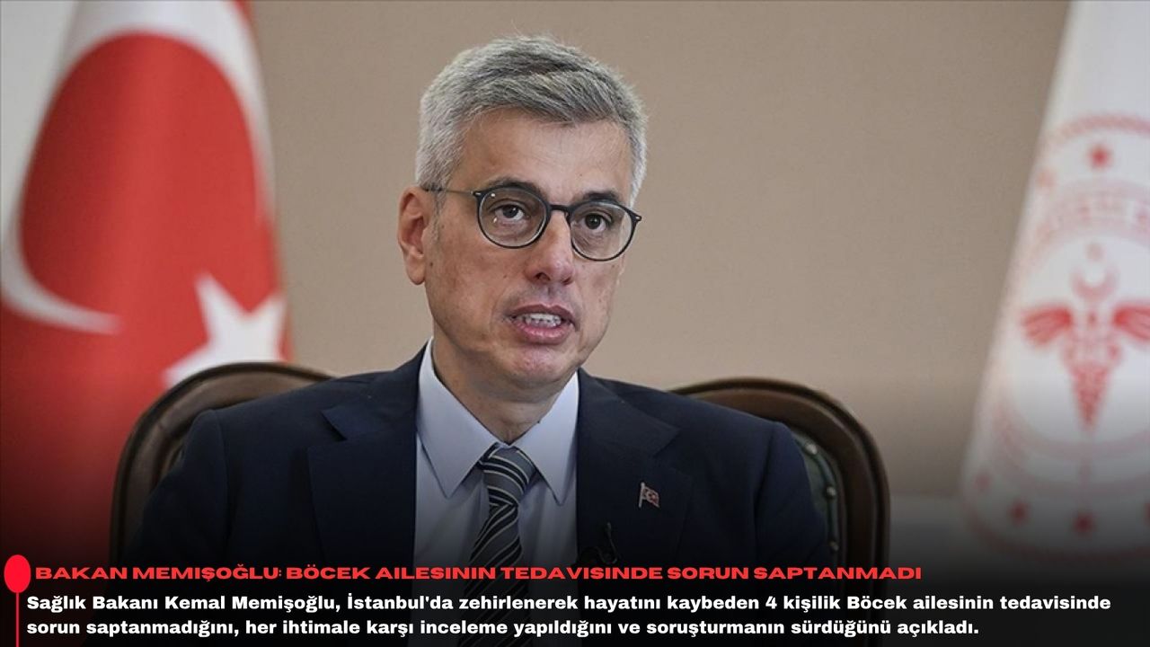 Sağlık Bakanı Kemal Memişoğlu, Böcek ailesinin tedavisinde sorun saptanmadığını, her ihtimale karşı inceleme yapıldığını ve soruşturmanın sürdüğünü açıkladı.