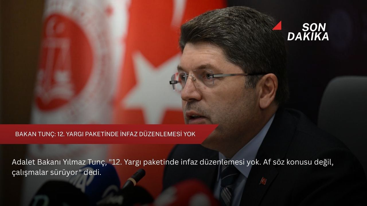 "12. Yargı paketinin içeriğinde af söz konusu değil" diyen Bakan Tunç, "12. Yargı paketiyle alakalı çalışmalar sürüyor. 12. Yargı paketi yargıdaki gecikmeleri önleyecek önemli düzenlemeler içeriyor" dedi.