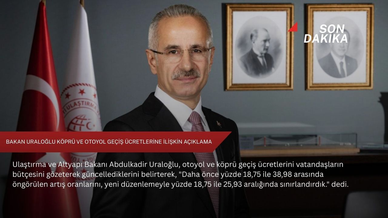 "Bu karar doğrultusunda otoyol ve köprü geçiş ücretlerini vatandaşlarımızın bütçesini gözeterek güncelledik. Daha önce yüzde 18,75 ile 38,98 arasında öngörülen artış oranlarını, yeni düzenlemeyle yüzde 18,75 ile 25,93 aralığında sınırlandırdık. Bu gece yarısı saat 00.00 itibarıyla yürürlüğe girecek uygulamaya göre, Karayolları Genel Müdürlüğü'müz tarafından işletilen otoyol ve köprülerde artış oranını yüzde 25,49 olarak belirledik, kamu-özel işbirliği projelerinde ise artış oranlarını yüzde 18,75 yüzde 25,49 aralığında tuttuk. Vatandaşlarımızın refahını önceleyen, ulaşımda erişilebilirliği ve sürdürülebilirliği esas alan bu düzenlemenin aziz milletimiz için hayırlı olmasını diliyorum."