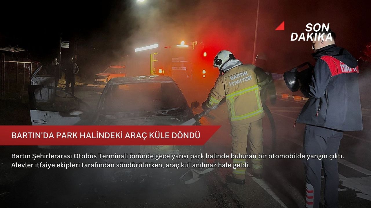 Bartın-Zonguldak karayolu Terminal Kavşağı’nda park halinde bulunan bir araçta gece yarısı yangın çıktı.