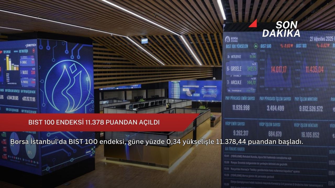 Açılışta BIST 100 endeksi, önceki kapanışa göre 38,34 puan ve yüzde 0,34 artışla 11.378,44 puana çıktı. Bankacılık endeksi yüzde 0,43, holding endeksi yüzde 0,46 değer kazandı.