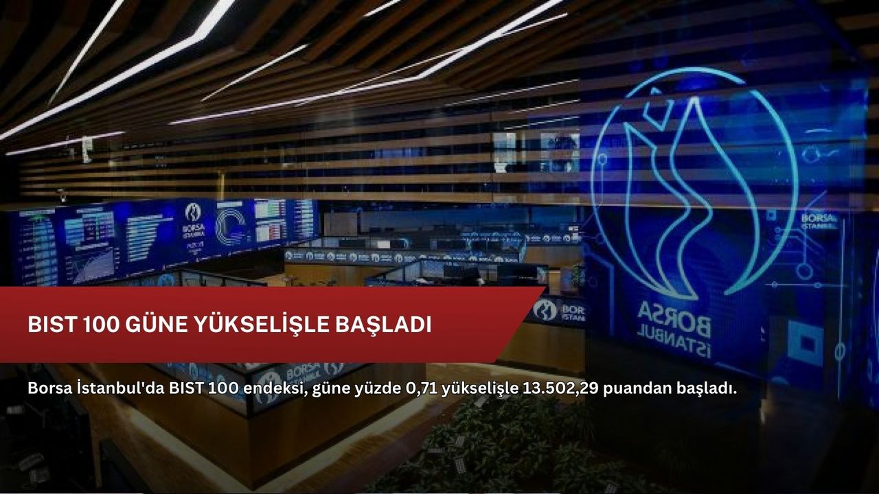 Bugün açılışta ise BIST 100 endeksi, önceki kapanışa göre 94,85 puan ve yüzde 0,71 artışla 13.502,29 puana çıktı. Bankacılık endeksi yüzde 0,79, holding endeksi de yüzde 0,52 değer kazandı.