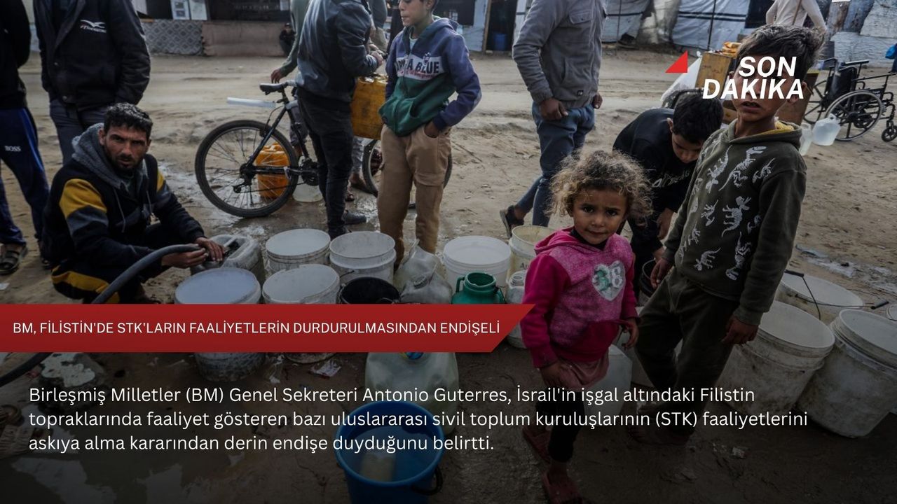 Açıklamada, "Genel Sekreter, İsrail makamlarının işgal altındaki Filistin topraklarında faaliyet gösteren çeşitli uluslararası STK'ların faaliyetlerini askıya alma kararından derin endişe duymaktadır." ifadesi kullanıldı.