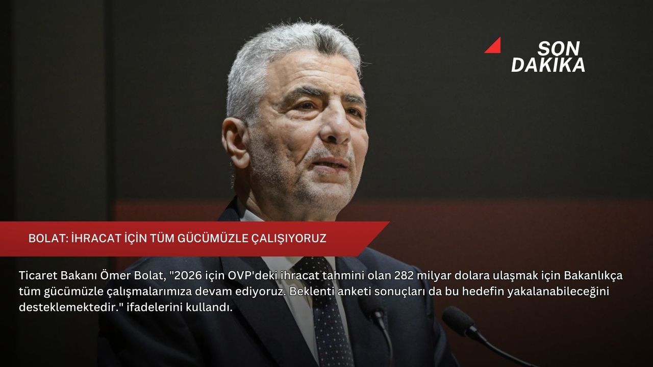 "Küresel ekonomide ağırlaşan rekabet koşulları, artan korumacılık, zayıf dış talep ve yakın coğrafyamızdaki gelişmelere rağmen ihracatın 270 milyar dolar eşiğini aşarak 273 milyar 434 milyon dolar olarak gerçekleşmesi, ihracatçılarımızın dinamizmini ve ülkemizin üretim kapasitesini yansıtmaktadır. Bu kapsamda 2026 yılı için OVP'deki ihracat tahmini olan 282 milyar dolara ulaşmak için Bakanlıkça tüm gücümüzle çalışmalarımıza devam ediyoruz. Beklenti anketi sonuçları da bu hedefin yakalanabileceğini desteklemektedir."