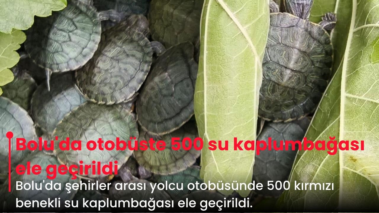 İl Jandarma Komutanlığı ekiplerince Anadolu Otoyolu'nda yapılan denetimde, otobüsün bagaj kısmındaki bir çantanın içerisinde, ülkeye sokulması, bulundurulması ve ticarete konu edilmesi yasak olan 500 istilacı tür kırmızı benekli su kaplumbağası bulundu.