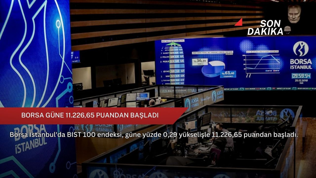Açılışta BIST 100 endeksi, önceki kapanışa göre 32,76 puan ve yüzde 0,29 artışla 11.226,65 puana çıktı. Bankacılık endeksi yüzde 0,32, holding endeksi yüzde 0,27 yükseldi.