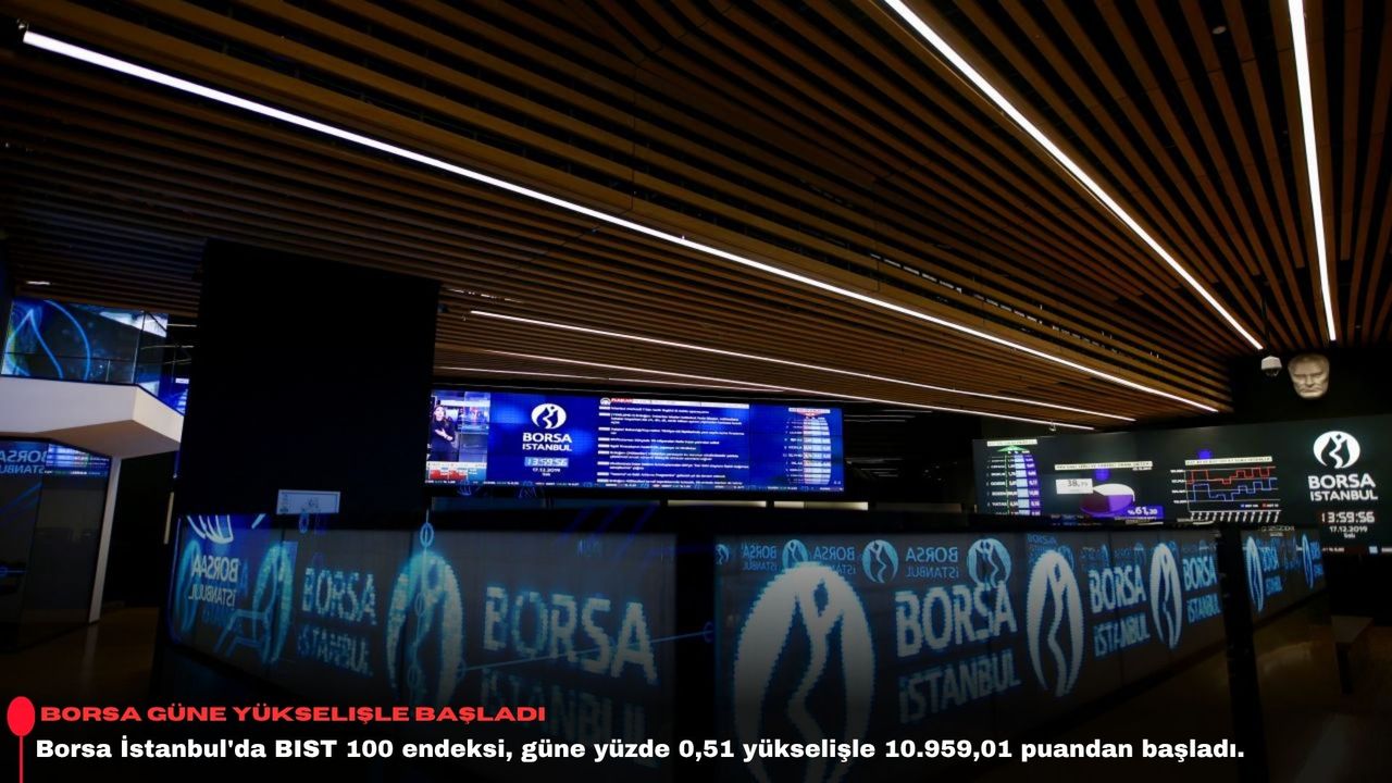 Açılışta BIST 100 endeksi, önceki kapanışa göre 55,10 puan ve yüzde 0,51 artışla 10.959,01 puana çıktı. Bankacılık endeksi yüzde 0,52, holding endeksi yüzde 0,07 arttı.