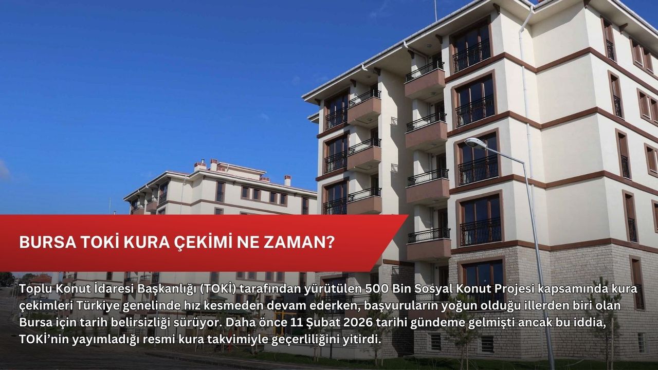TOKİ tarafından açıklanan 9-15 Şubat 2026 haftasına ait resmi kura takviminde Yozgat, Kütahya, Bilecik, Çankırı, Bolu, Tekirdağ ve Balıkesir gibi iller yer alırken, Bursa için herhangi bir kura tarihi açıklanmadı. Bu durum, kentte başvuru yapan binlerce vatandaşın gözünü yeni duyurulara çevirmesine neden oldu.
