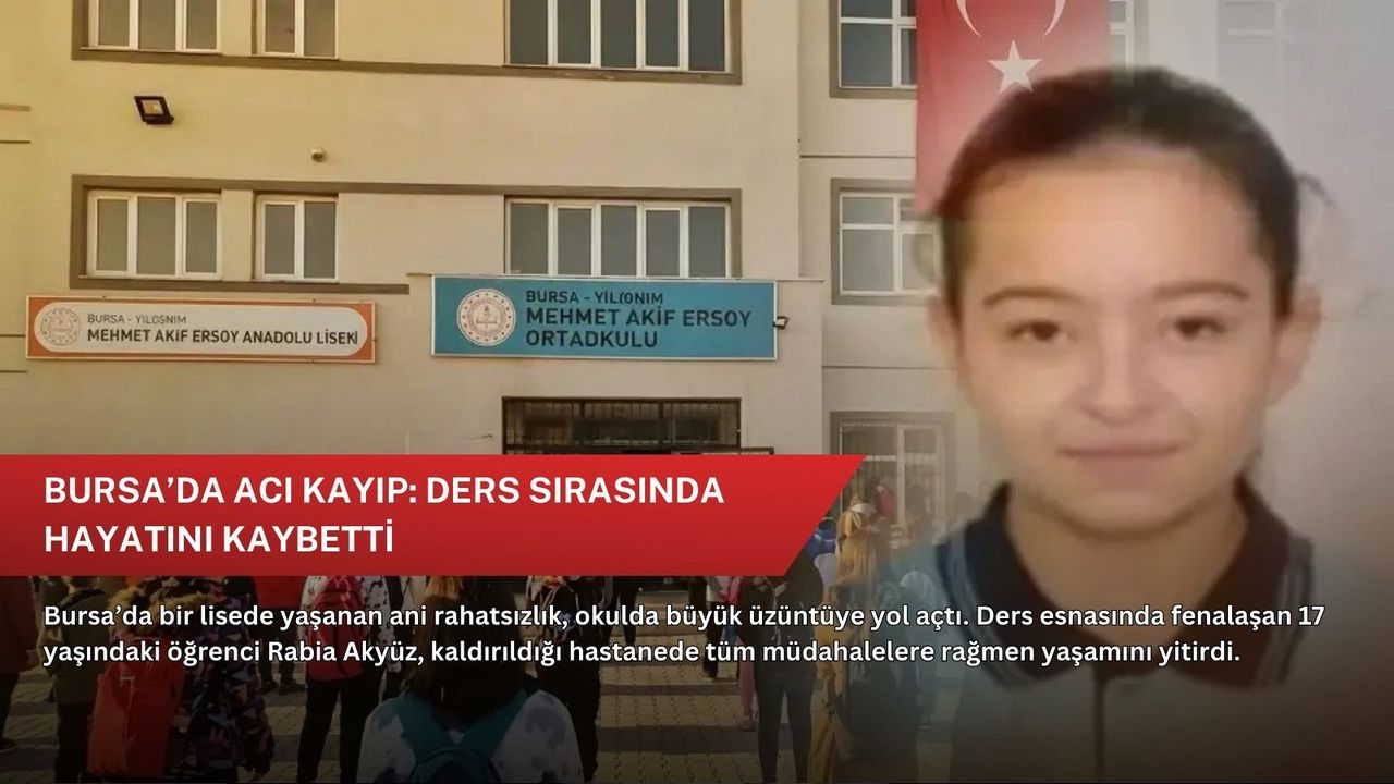 Olay, Yıldırım ilçesinde bulunan Mehmet Akif Ersoy Anadolu Lisesi’nde meydana geldi. Edinilen bilgilere göre 12’nci sınıf öğrencisi Rabia Akyüz, ders sırasında aniden rahatsızlandı ve sınıfta yere yığıldı. Durumu fark eden öğretmenler, vakit kaybetmeden sağlık ekiplerine haber verdi.