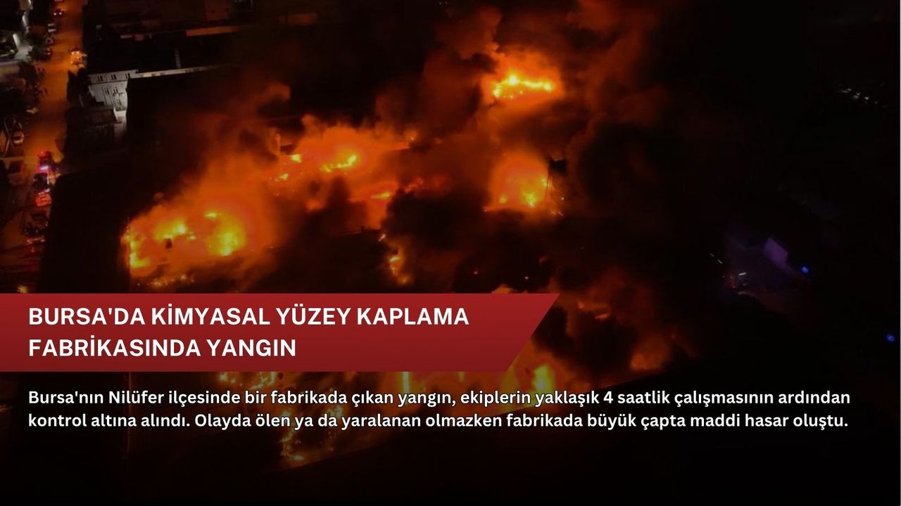 Minareliçavuş Mahallesi Nilüfer Organize Sanayi Bölgesi'nde kimyasal yüzey kaplama yapan bir fabrikada henüz bilinmeyen nedenle yangın çıktı.
