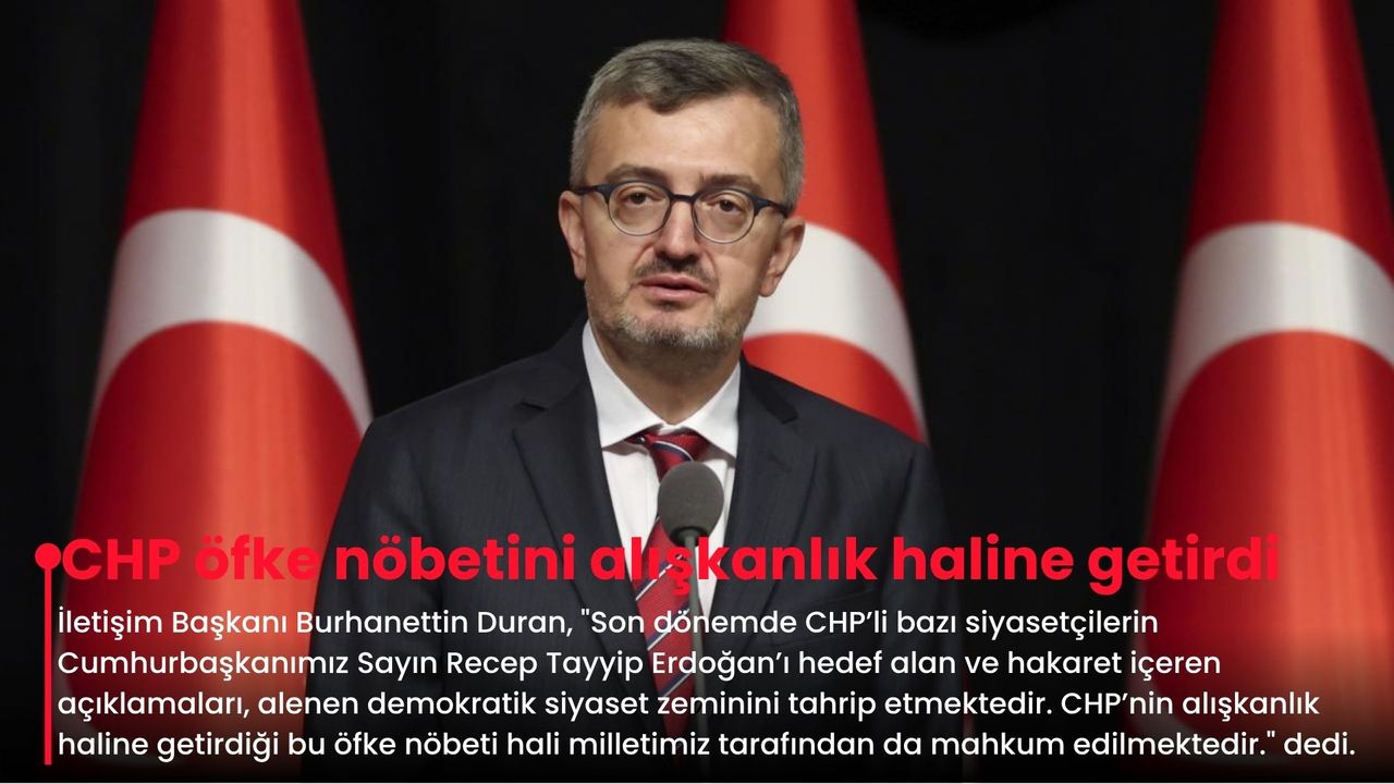 İletişim Başkanı Burhanettin Duran, sosyal medya hesabı üzerinden CHP yöneticilerinin açıklamalarına sert tepki gösterdi.