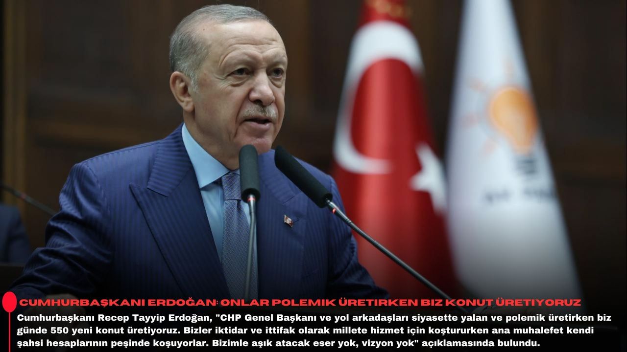 Biz laf üretmeyeceğiz sadece iş ve eser üreteceğiz. Bu sözümüzün de daima arkasında duruyoruz. Geçen hafta Adıyaman'da 350 bininci afet konutlarımızı hak sahiplerini teslim ettik. Konutlarımızın yüzde 78'ini tamamlamış olduk. Kurasını çektiğimiz yeni konut ve iş yerlerinin hayırlı olmasını diliyorum. CHP Genel Başkanı ve yol arkadaşları siyasette yalan ve polemik üretirken biz günde 550 yeni konut üretiyoruz. Bizler iktidar ve ittifak olarak millete hizmet için koştururken ana muhalefet kendi şahsi hesaplarının peşinde koşuyorlar. Bizimle aşık atacak eser yok, öneri yok, milletin sorunlarına çözüm üretecek vizyon yok. Bolca hakaret var, küfür var, siyasi nezaketsizlik var. Aykırı her sesi susturma çabası var. CHP'nin göstereceği tek bir eseri olmayınca ellerinde sadece yolsuzluk dosyaları kalıyor. Baklava kutularından para kulelerine onlara birkaç sene yetecek malzeme var. Ana muhalefet partisinin girdiği bu tükenmişlik sendromundan çıkmasını diliyorum.