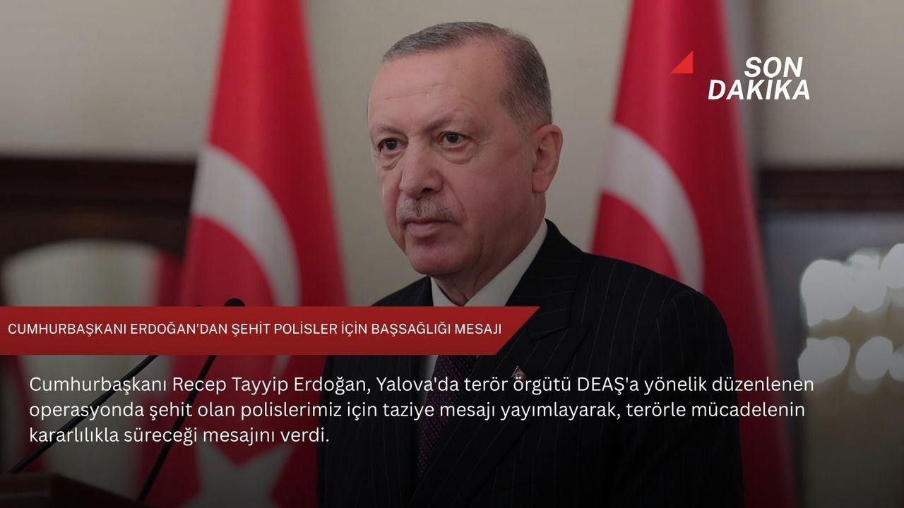 Cumhurbaşkanı Erdoğan, sosyal medya hesabından yaptığı paylaşımda, bu sabah Yalova’da terör örgütü DEAŞ’a yönelik gerçekleştirilen operasyonda şehit olan polis memurları için Allah'tan rahmet diledi.